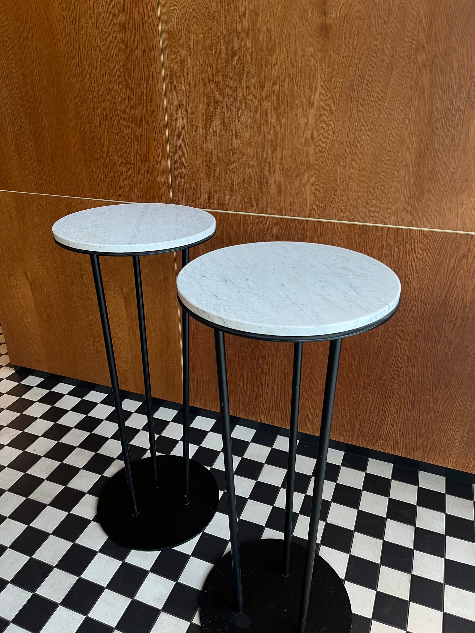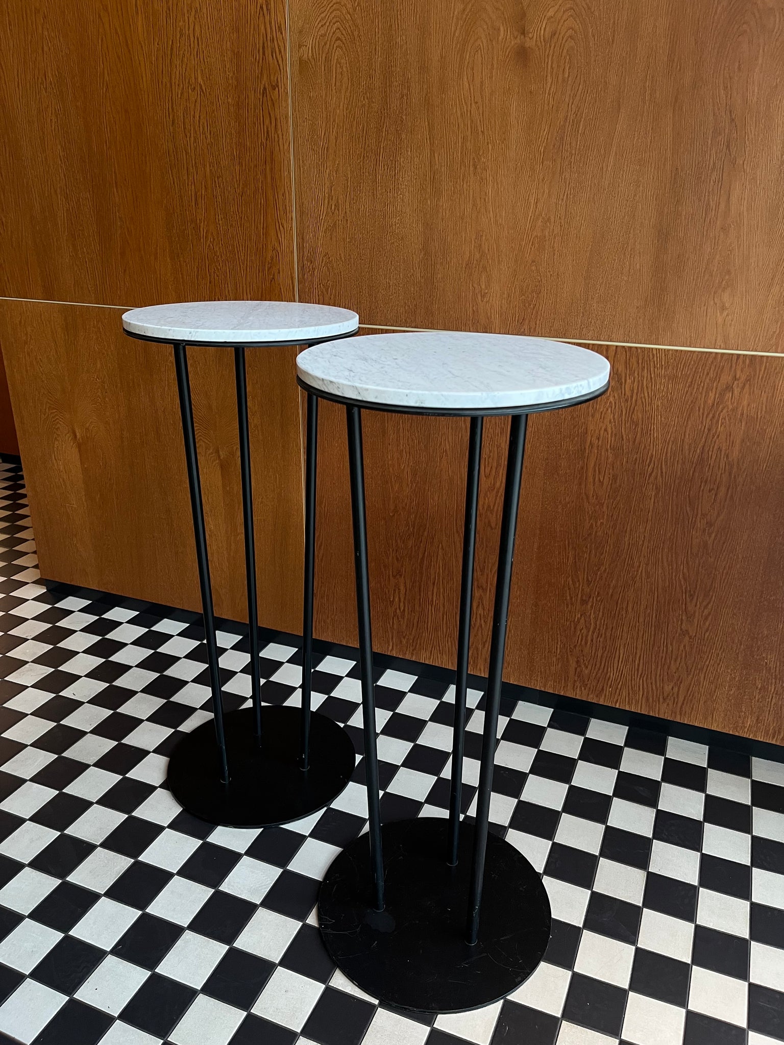 Stół barowy z blatem z marmuru bianco carrara - idealny do domu, biura, czy ogrodu. Na szybką kawę, kieliszek wina, czy pogaduchy w biegu. My uwielbiamy te stoliki, ale nie przydadzą nam się już niestety.